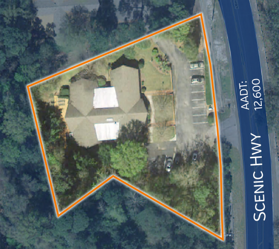 5088 SF of office space situated on .87 Acres on Scenic Highway. This space offers accomodations for: office building.