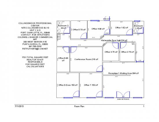 Professional office space on Collingswood Blvd. These units all have a small kitchenette area, a restroom and some have multiple offices. Located in the Murdock Town Center area these are great satellite office spaces for firms opening up a branch office presence in Port Charlotte. Inexpensive rent within a short distance to the County administration offices on Murdock Circle.