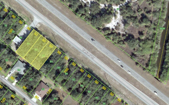 3 lots (243, 247 & 251 Tamiami Trail) measuring 150'x150' with 150' of frontage directly on Tamiami Trail. Great location in a highly sought after area with development happening in all directions, right across the street from the new Fucillo Kia dealership currently under construction and a short distance to Flower's Bakery. HIGH TRAFFIC COUNTS!