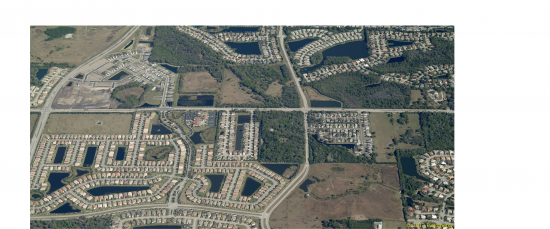 Signalized corner property surrounded by mostly residential development.