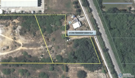 Property(s) is approximately 1,565.78' deep on the south property line, 1324.33' deep on the North property line, 334' on the rear property line, with 234.06' of frontage on Old Dixie Hwy.