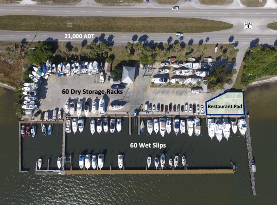 Multiple options exist to expand the marina, which includes the following: expand outdoor dry storage (more dry slips), install covered in water lift slips for large center consoles, or redevelop this into a new state-of-the-art indoor dry storage marina. Dry storage demand in the area exceeds supply, with high barriers to entry and the potential for future rate growth, making redevelopment an attractive option to consider. Other development options include a waterfront restaurant or condominiums overlooking the marina.