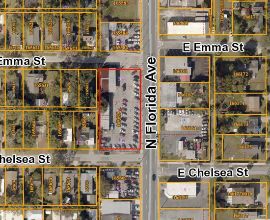 Corner lot auto sales (dealership), retail, office, Industrial making this property prime for current use of sales/service or redevelopment opportunities. Total Building Size 3,804 SF (Auto service garage - 2,154 SF plus office - 1,650 SF). Conveniently located near I-275 in Seminole Heights area. Approximately five blocks north from MLK and approximately five blocks from I-275. Located on busy N Florida Ave with Emma Street on one side and Chelsea Street on the other. The building is block construction facing busy N. Florida Ave.