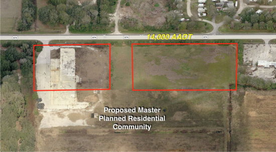 LOCATION DESCRIPTION The property is located at 5107 674 Hwy in Wimauma, FL. The 2 parcels are on either side of the main entrance to the new master planned residential subdivision known as SouthShore Bay AKA Sobella The parcels are on the south side of the road, just half a mile east of US 301. Highway 674 has a traffic count of 14,000 AADT (Average Annual Daily Traffic) as of 2015 per FDOT.