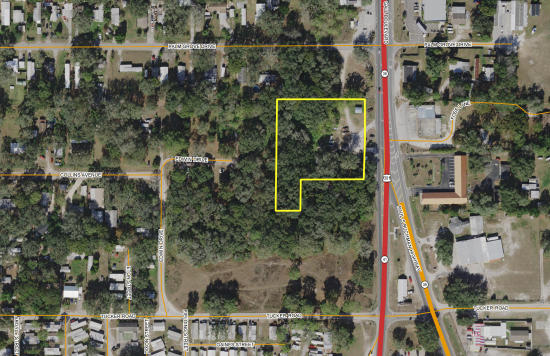 This is a development opportunity with 1.92 acres located at the intersection of US 301 and CR 39 in Downtown Zephyrhills, FL. The site is level, high and dry, with excellent visibility and access off and onto the city’s major commercial corridor (US 301). The property is located at the southern entry point of Downtown Zephyrhills, FL, and is surrounded by commercial development and residential neighborhoods. It has a small, functional building that is currently use for an auto sales center.