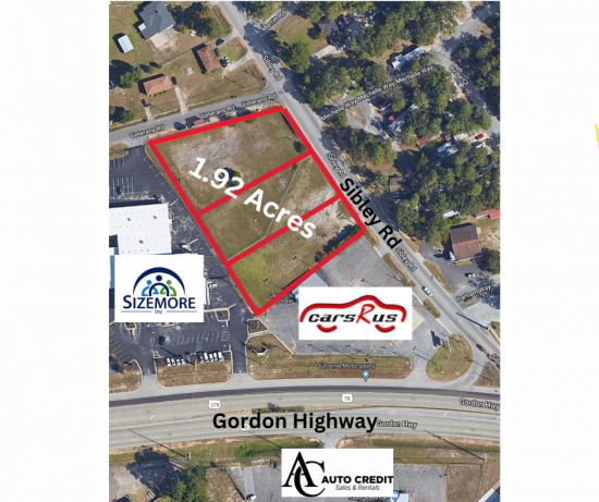 Commercial Land located just off Gordon Highway along Sibley Road. 1.92 acres zoned B2 with good access. Neighbors include Sizemore, Inc. new headquarters and Cars R Us. Good visibility from Gordon Highway, which has over 23,000 VPD. This space offers accomodations for: office.