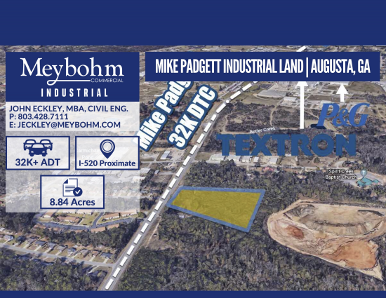 Meybohm Commercial is pleased to exclusively present this 8.84 acre tract of industrial land along the busy Mike Padgett corridor (32,000 DTC). This represents a great opportunity for a user or investor. Located in South Augusta, GA, just 1.4 miles south of I-520 (42K DTC), this property represents a great location in the heart of one of Augusta's primary industrial sectors with great access to the greater region. This location would work well for a variety of industrial and commercial purposes given its strategic location, and one of the MSA's highest daily traffic counts. The property is zoned agricultural (Richmond County) but per county precedent likely to be readily changeable to light industrial or other zoning. This space offers accomodations for: industrial.