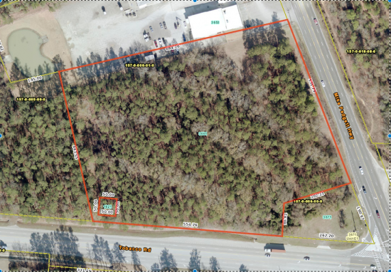 Perfect corner lot for all kinds of development options with B2 (Commercial) zoning. 8.34 acres, and one of the last corners along these highways with this much acreage and opportunity. This space offers accomodations for: street retail.