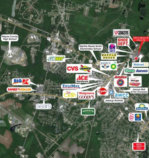 This property is a strong trade area, just off Highway 241 adjacent to a 24-Hour Wal-Mart Supercenter. Jesup is located deep in the heart of southeast Georgia, one hour south of Savannah and Hilton Head Island, on the banks of the Altamaha River, and is the county seat for Wayne County.