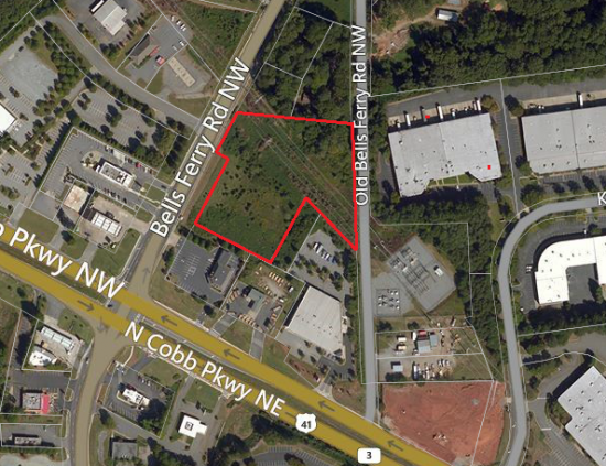 3.76 acre lot zoned neighborhood retail with approximately 611 feet of road frontage on Old Bells Ferry Rd. and 141 feet of road frontage on Bells Ferry Rd.