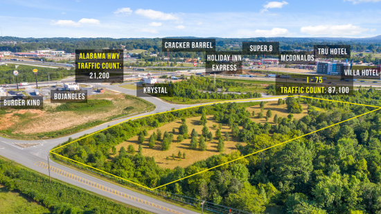 4.38 acres located right off 1-75 at exit 348 in Ringgold GA makes this an ideal location for hotel site, self storage, retail or light industrial.