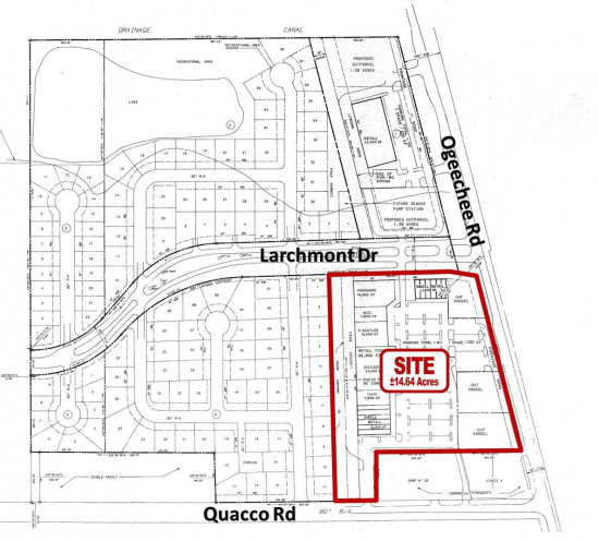 +/- 14.64 acres of Commercial land for sale along Highway 17 South and Quacco Road. Property is zoned PUD BC-2. The property is fully entitled with all utilities to the site and has been delineated with Corps of Engineers. This space offers accomodations for: retail.
