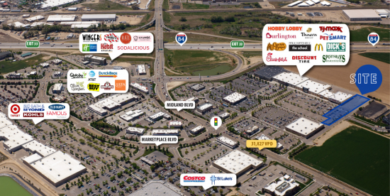 The first shopping center, and #1 shopping destination in Canyon County, at first lighted intersection off of I-84 — at Midland Blvd & Marketplace Blvd.