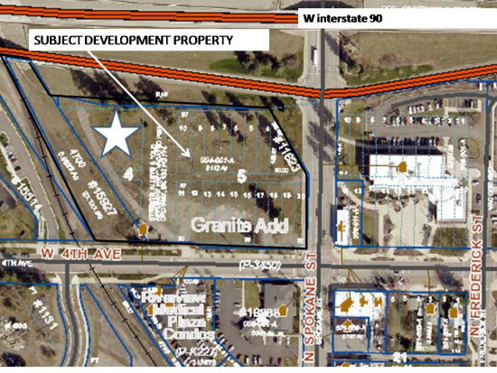 Fronting on the I-90 Spokane Street exit off ramp (SW corner) this is an old time holding previously mapped into smaller lots, see attached plat map. Owner will consider any reasonable configuration currently offered in three Parcels "A" $450k has two curb cuts directly across from Post Falls City Hall, Parcel "B" fronting on Fourth Ave is across the street from newer medical office development, Parcel "C" is suitable for multi family or commercial development.