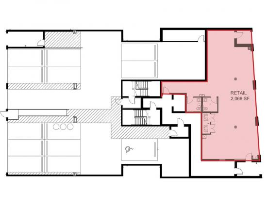 ■ This property has 2 spaces available ranging from 2,020 SF to 2,068 SF.