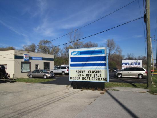 For sale or lease. 10,552 sf freestanding building on 1.93 acres. Fenced yard. Previously used for boat sales & service, plus fishing gear retail. Still used for boat storage. Solid retail building with masonry block construction. Features front retail, central showroom, service/parts area, offices, large mezzanine, back warehouse with storeroom. Multiple overhead doors. 3 phase electric. A/C in front half of building. Well & septic.