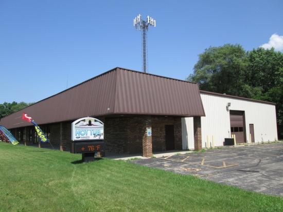 For lease or sale. 12,600 sf building on 2.66 acres. 4,550 sf available for owner/user or new tenant. Excellent for automotive service business. 1 active overhead door in vacant unit. 5 additional are sided over in place. B3 zoning. Existing tenant is retail hot tub sales. Great drive-by exposure & signage on Route 31. Private parking lot. $4,637/mo total rent includes $10.00/sf base rent plus $2.23/sf in pass thru costs (CAM).