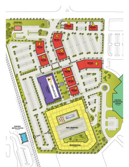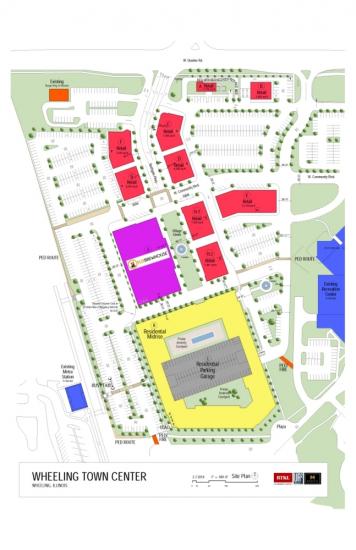 Join Flix Brewhouse Cinemas at Wheeling Town Center!!! New construction, transit oriented lifestyle retail development at the Wheeling Metra Station, anchored by a 288 unit luxury rental apartment building. Small shop, outlot, and mid box opportunities available. Tenant mix to include theater, full service restaurants, casual dining, daily necessities and services. Huge parking field. Part of Wheeling Master Plan. Developed by Urban R2. Designed by RTKL Architects. Opening in 2016.