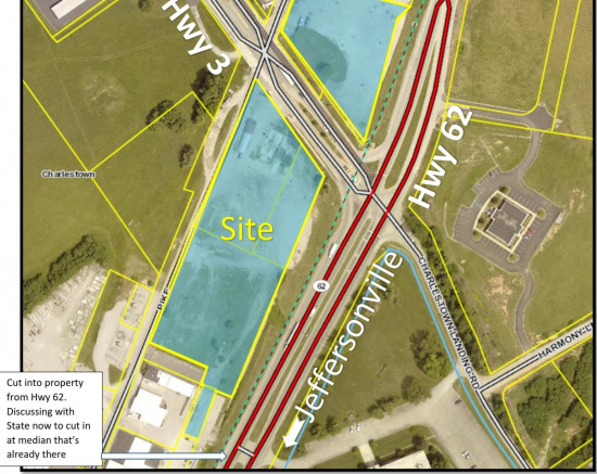Entry to the City of Charlestown. This apprx 3ac site is a great lighted hard corner at the intersection of 2 highways, Hwy 62 and Hwy 3. The City has it zoned as Downtown Historic District. Don't let the title fool you as it is very similar to what B-1 allows. Permissible uses are many. If you need details as to what is allowed, go to the link, City of Charlestown and look up their new City Zoning Ordinance which is also on the links I have provided. There are many projects happening at River Ridge in both Jeffersonville and Charlestown. Charlestown has other new activity with more residential growth and industrial growth bringing jobs, jobs, jobs. The City is eager for more growth. Give them a call.