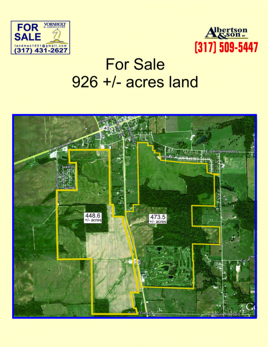 This 926 +/- acres stretches along both sides of State Road 39 just 2.9 miles north of the I-70 exit. The west side of the road is suited to Industrial while the east side abuts residential and a golf course. This package would be a good PUD. There is sewer and water close. There are two possible lake locations. AND the golf course could be part of the package. The St. Rd. 39 exit is approx. 7 miles west of Indianapolis International Airport.