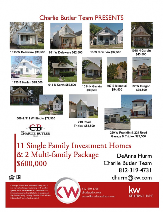 Investment Opportunity. Triplex which also includes a warehouse/storage space. The warehouse/storage space is currently unoccupied. Included behind triplex is a Detached Garage with apartment which currently rents for 400/month. Unit A currently rents for $580/month, unit B currently rents for $330/month, & unit C currently rents for $330/month. Sold as a package of 11 single family investment homes & 2 multifamily properties. Package includes 1013 W Delaware, 911 W Delaware, 221 Read St, 1014 N Garvin, 1018 N Garvin, 1309 N Garvin, 1130 S Harlan, 309 W Illinois, 311 W Illinois, 613 N Kerth, 107 E Missouri, 32 W Oregon, & 219 Read St.