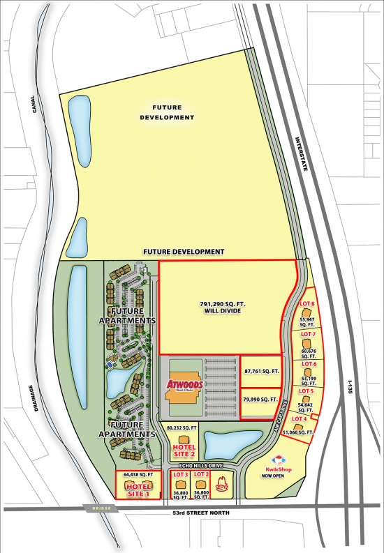 Echo Hills Commercial Development is a planned regional retail development that is located one mile north of the intersection of I-135, I-235, Hwy. 96, and K-254, 3 miles south of the new Crosswinds Casino, two miles south of the new 1,100,000 SF Amazon Warehouse under construction, one mile from the 925,000 SF Pratt Industries warehouse under construction, and within a 12-minute drive of downtown Wichita.