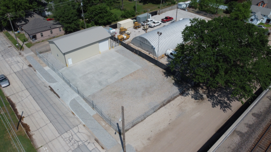Property is fully fenced with 6 ft triple-barb chain link. This space offers accomodations for: manufacturing.