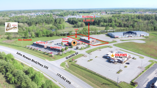 GREAT INVESTMENT OPPORTUNITY IN THRIVING MARKET! NAI Isaac is pleased to present +/- 6,500 SF retail/office building with an additional building pad ready for a +/- 6,500 SF building totaling 1 AC. Newer attractive construction - Built in 2007. Ample shared parking available. Great access and visibility from Highway 245/John Rowan Boulevard recently improved with Highway 245 expansion. Located at the intersection of Hwy 245/John Rowan Boulevard & Granite Drive with close proximity to downtown and Blue Grass Parkway. Buffalo Wings & Rings, Colton's Steakhouse and Peddlers Mall are located within the center (separately owned parcels). This space offers accomodations for: free standing building.