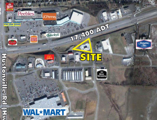 Located on the Bypass near Wal-Mart, Lowes, Kroger and Kmart. This space offers accomodations for: freestanding store.