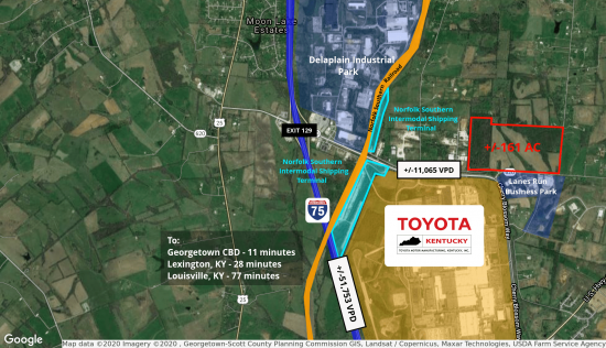NAI Isaac is pleased to present +/- 161 acres of zoned I-1 land for sale in Georgetown. The land is located across from Toyota Manufacturing Plant and near Delaplain Industrial Park. This space offers accomodations for: other.