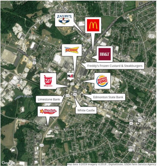 Pad ready site with ingress/egress and curbs provided(to be verified by Buyer) adjacent Walgreens and major medical at the Main and Main of Glasgow, KY