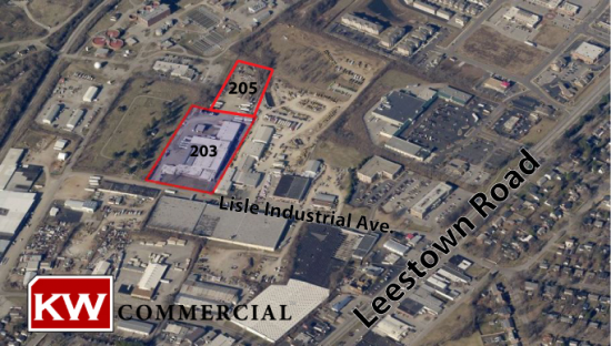 For lease is 203/205 Lisle Industrial Avenue at Leestown Road. 203 features a 96,000+ s/f warehouse zoned for industrial use and sits on 5.65 acres. 205 is a 2.48 vacant lot zoned commercial. Next to Whayne Supply and conveniently located adjacent to Leestown Road, these properties are an excellent investment opportunity and are an excellent location for nearly any industrial application. This space offers accomodations for: flex space.
