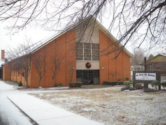 Campus consisting of church, school, gym, rectory, athletic fields.