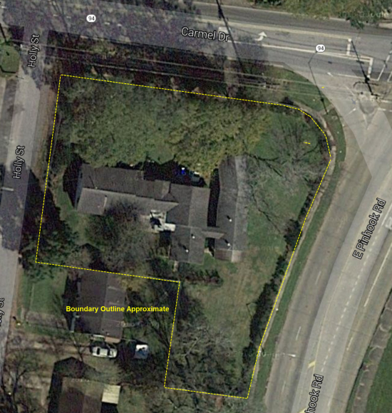 Highly traffic corner. 0.63 acres with frontage on Carmel Drive, E. Pinhook Rd. and Holly St. Majority of parcel zoned Commercial Heavy with remainder zoned Residential. Exisitng frame home & garage.