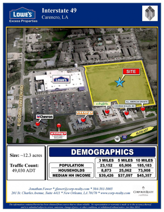 commercially and residentially. This is a great opportunity for both local and national retailers, as well as hotels and restaurants. Lowes is the anchor, Super 1 Foods opened a mile north in 2012 and Walmart Supercenter is currently under