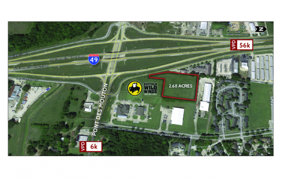 Excellent I-49 frontage at the intersection of Pont Des Mouton Avenue. The site is directly adjacent to a Buffalo Wild Wings restaurant in an area of steady growth. This is a great opportunity for local and national retailers.. All Utilities are at the site.