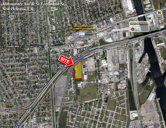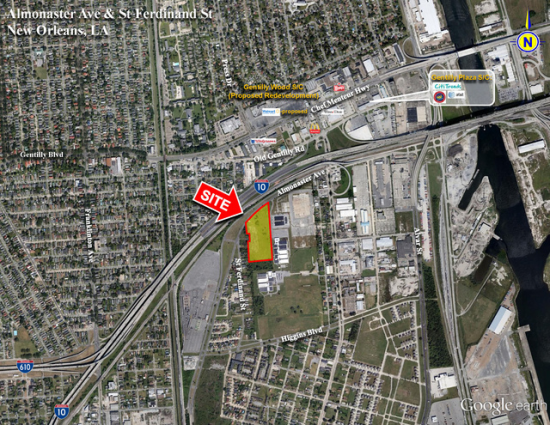 Description: An approximately 42 acre cleared and filled industrial lot fronting Almonaster Avenue in New Orleans, just east of Crescent Crown Distributing facility on the east side of the Industrial Canal. Site has net usable land area of approximately 32 acres and is zoned H-I, Heavy Industrial.