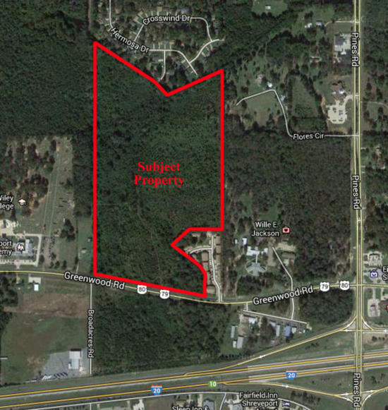 The Subject Property is comprised of 62± acres of land located on Greenwood Road (Highway 80) just west of Pines Road in West Shreveport. The acreage is divided into three zoning classifications. Pricing and zoning are as follows: