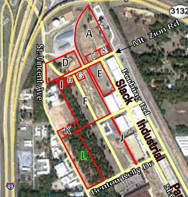 Tract K is 1.58 acres with 171' of frontage along St. Vincent Avenue. Tract K and L can be combined for a total 9.63 acres with 1249' of St. Vincent frontage. Other tracts are available in Slack Industrial Park. The undeveloped land is suitable for development of smaller individual free-standing buildings as well as larger single tenant and multi-tenant buildings and build-to-suits are available.