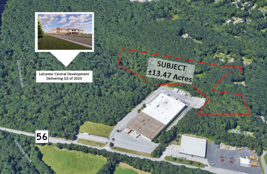 New development activity is lively in the immediate area of the subject property. Underway on the adjacent land parcel is the “Leicester Central” development headed by The Brennan Group and John M. Corcoran & Company. Leicester Central is a ±267,000 square foot centrally located Class A warehouse and distribution facility with a projected delivery date of March 2023. This top-of-the-line facility will boast 36’ clear ceiling heights, 60’ speed bay, 45 dock doors and include build-to-suite office space within.
