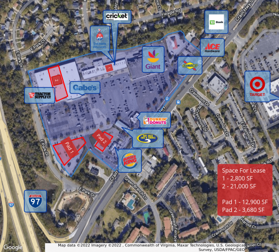 Advantageously situated along busy I-97, East Park Shopping Center is a one-stop retail cornerstone in Glen Burnie. The Center is a major artery serving all commuters between Annapolis and Baltimore. This space offers accomodations for: strip center.