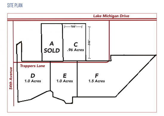 New Commercial PUD on Lake Michigan Drive near 48th Ave! There are a number of different sites from 1 - 1.5 Acres or combine for up to 4.5 acres. Road has been put in the site, city water and sewer to each lot and multiple uses available. Near student housing and the busy intersection of Lake Michigan Dr/48th Ave. Nearby businesses include GVSU, Burger King, Jimmy Johns, Save-A-Lot, Main Street Pub, DQ/Orange Julius and Lake Michigan Credit Union.