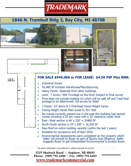 Call Gretchen Witherspoon at Trademark Commercial Group 989-792-6400 for more information.