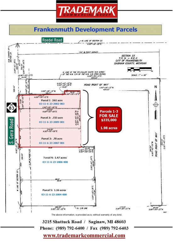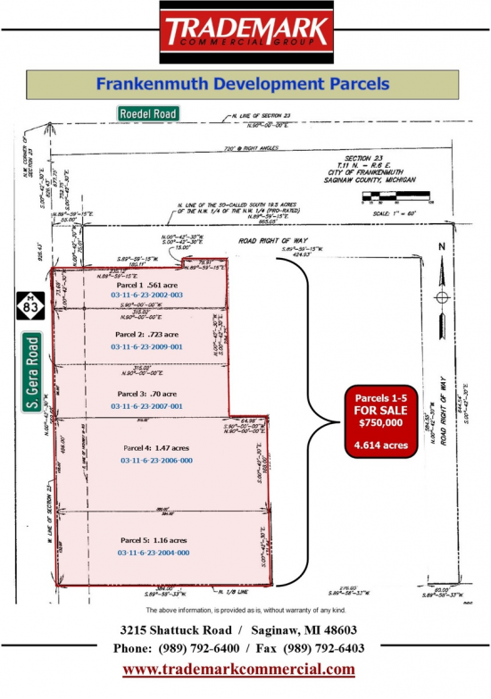 Please feel free to call Gretchen 989-792-6400 at Trademark Commercial Group for all the details.