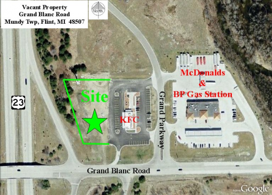 1.3 acres of prime land located on the northeast corner of US-23 and Grand Blanc Road. Site offers 375 ft. of frontage on expressway and 125 ft. on Grand Blanc Road. Property neighbors several new developments including Kentucky Fried Chicken, McDonald's and BP Station. Parking lot and curb cuts already in so save lots of money on improvements.