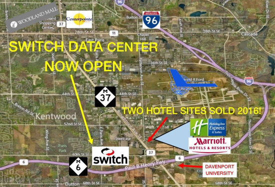 Near new Davenport Campus and M-6/Broadmoor (M37) interchange. PUD zoning, office, hotel pad, etc. High visibility from Broadmoor. Adjacent 5.47 acres also available.Tax information: $15,523.11