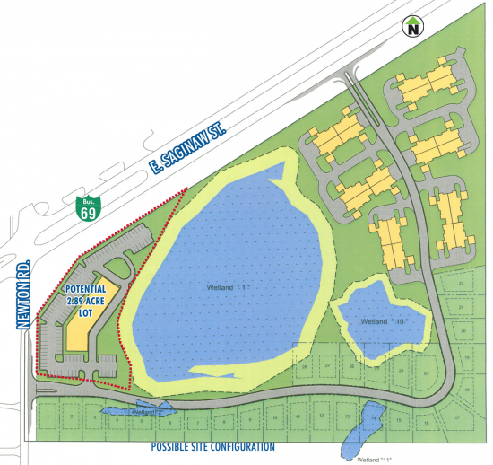 23.97 acres on Newtown and M-78 in Meridian Township. Planned unit development for office/retail up to 15,000 SF; 120 apartment/condos and 28 single family lots. Water and sewer to the south, price includes bringing utilities to site. Commercial land on west side of property consisting of 2.89 acres can be sold separately for $325,000