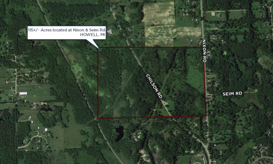 115.8 acres for sale off of Nixon Road in Howell Ideal site for high-end residential development Naturally beautiful site in growing market Conceptually designed for 33 single family homes in park like setting (concept plans available on request) Concept plan calls for 33 estate size lots Asking price: $1,399,000