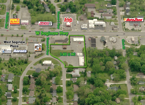 Multi building site consisting of a retail strip, restaurant and office building with frontage on W. Saginaw Hwy., just west of Waverly Road. Three parcels totaling 1.82 acres ready for redevelopment.
