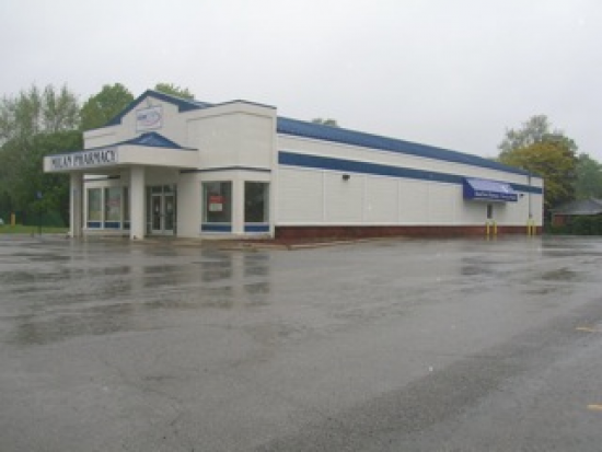 High Visibility! National chain restaurants nearby. High Traffic Count! Easy in and out. 50 parking spaces. Renovated in 2003. On edge of residential area near US-23 ramp in Milan. Building is column free and would be ideal for many uses including restaurant, service, office, fitness or recreation. Zoned C-4 (highway service). Also available for Lease